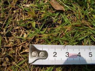 B 芝生の上で 乾燥した「この生物」を細かく砕くと、其々が増殖して 駆除に苦労。